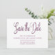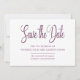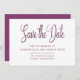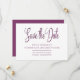 Elegante y profundo diseño de ciruela y blanco. Guardar la fecha se escribe en un texto de script hermoso. A continuación se indican sus nombres, fecha de boda y ubicación. Puede incluir un mensaje adicional en la parte posterior.