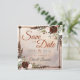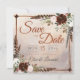 Un complemento perfecto para el tema de boda de tu colección Rustic Woodland Feathers y Floral Bloom, esta postal de "save the date" presenta un marco de madera bordeado por un surtido de flores blancas, nogal y burgundy, hojas del bosque y un conjunto de plumas rústicas colocadas sobre un lienzo pintado a mano en beige, castaño, taupe y umber. Personalice fácilmente el contenido con sus nombres y fecha. El reverso presenta sus iniciales y cualquier información que desee agregar como su sitio web. Si está pidiendo a su familia y amigos que guarden una de las fechas más importantes de su vida, ¿por qué no dar ese paso extra y pedirles con estilo?
