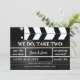Tarjetas de reserva de fecha de boda pospuesta con claqueta de cine divertida We Do Take Two