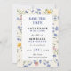 Agregar imagen y Invitación de Guardar la fecha de boda con flores silvestres en prado acuarela. Botánica acuarela de flores silvestres rústicas, flores elegantes.