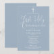 Esta invitación de primera comunión en azul polvoriento con elegante letra puede ser personalizada con toda la información de su celebración especial. Diseñada por Thisisnotme©