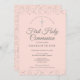 Una elegante Primera Comunión sagrada salva la invitación de fecha con un delicado polvo de estrellas de plata en un fondo rosa rubor. Puede personalizar con sus detalles especiales de celebración en texto plateado de moda. Diseñado por Thisisnotme©