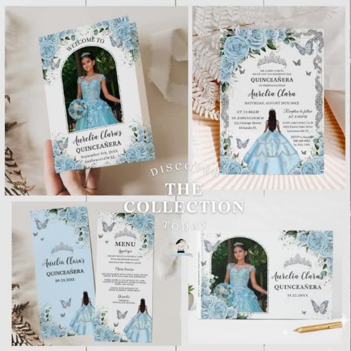 Reserva La Fecha Princesa Floral Azul cielo dulce 16 QUINCEAÑERA