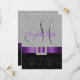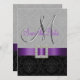 La sofisticada elegancia se transmite por esta hermosa boda Save the Date Card design. Un patrón de damasco gris y negro sirve como fondo para un efecto fotográfico de la M inicial metálica plateada y una cinta de satín morado y broche de diamante TODAS IMPRESAS en TARJETA PLANA Guardar las Invitaciones de Boda de fecha. Una manera perfecta de anunciar a su próximo boda. Patrón de damasco contemporáneo, pero clásico, con un diseño que permite personalizar el frente con sus nombres y el reverso es libre de añadir el texto de fecha guardado personalizado. La invitación a la boda se establece para el primer "M" de monograma. Para otras letras, diferentes colores y fondo de la cinta, por favor contacte con el diseñador en luxuryweddinginvitations@gmail.com. Diseño de diseño de Elke Clarke©. Gráficos con licencia. Además, elija entre una variedad de fuentes y hermosos papeles para hacer que sus invitaciones a la boda sean PERFECTAS!