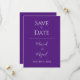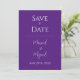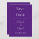 Deep elegante morado "Save the Date" que es perfecto como preludio a tu invitación formal para todos tus invitados. Hecho con hermosos tipos de letra en blanco simple y a la vez elegante. Perfecto para su ocasión especial. Un recordatorio perfecto para todos sus huéspedes.