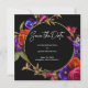 Elegante y audaz floral moderna contiene flores púrpura, naranja y rosadas sobre un fondo negro. Esta audaz botánica rodea un marco dorado redondo. Los detalles de su tarjeta de aviso de salvación están en blanco brillante. La parte posterior de la tarjeta de aviso de salvación presenta la palabra AMOR escrita en letras decorativas y adornada con flores. Esta tarjeta de aviso de salvación es parte de la Colección Midnight Save the Date. No dude en enviarme un mensaje si necesita ayuda para encontrar artículos que coincidan.