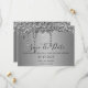 Quinceanera, plata, goteo purpurina, brillo, elegante, moderno, guión, guardar las invitaciones de fecha. Por favor, personalícelo con sus detalles.
