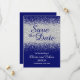 Esta moderna y elegante tarjeta "Save the Date" tiene un efecto purpurina en un rico fondo azul real. Puede personalizar el estilo de letra y el color de la forma que desee, así como cambiar el color de fondo de la tarjeta. Forma parte de una hermosa suite boda que puede ser totalmente personalizada.