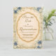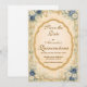 Un elegante diseño costero que presenta rosas azules navy, delicadas flores marfil, cuerda náutica y anclas clásicas que rodean un marco vintage ornamentado. Los suaves florales de acuarela y el fondo cálido de pergamino antiguo crean una estética atemporal de costa inspirada en jardines marítimos y romance costero. Perfecto para una celebración refinada de inspiración oceánica con encanto náutico clásico.