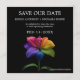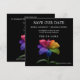 A striking square Save the Date from the Technicolor Love collection, featuring the vibrant rainbow lily blooming in a full spectrum of colour against a deep black backdrop. The compact square format adds a modern, stylish feel while keeping the design clean, bold, and unforgettable.