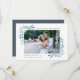 Anuncie su próximo boda al estilo moda con nuestra elegante foto guarde las tarjetas de fecha. Graceful sprigs de hojas y bayas de color azul crujiente enmarcan tu foto, con los detalles de tu boda en la parte superior e inferior.