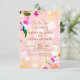 Hermoso diseño de tarjeta de boda floral elegante con ramo de orquídeas sobre fondo rosa melocotón. El texto es totalmente personalizable.