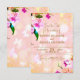 Hermoso diseño de tarjeta de aviso de boda floral elegante con ramo de orquídeas sobre fondo rosa melocotón. El texto es totalmente personalizable.