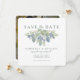 Una tarjeta de anuncio de foto perfecta para salvar la fecha para el tema floral de suculentas de moda que es tan popular hoy en día. Un hermoso ramo de plantas suculentas en hermosos tonos de verde polvoriento, azul, gris y lavanda están inspirados en los colores impresionantes de estas increíbles pequeñas plantas. El texto gris suave con tono verde se ve impresionante contra el fondo blanco crujiente. En la parte posterior, la foto de la novia y el novio está enmarcada en blanco. Vea todos nuestros otros productos coordinados en la línea "Ramo de Suculentas" para crear un hermoso conjunto de boda a juego.