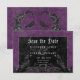 Transportar a sus invitados a un mundo de oscuridad y elegancia encantadora con nuestra vintage boda gótica, salvo la tarjeta de cita. El fondo púrpura profundo y envejecido prepara el terreno para un sorprendente contraste, a medida que el texto en negrita blanco emerge de intrincados cuadros de texto en negro. Los elementos góticos tridimensionales adornan el diseño, capturando la esencia del misterio y el romance. Desate la magia y marca el tono para un día de boda inolvidable. Creado por Simply Farmhouse Press.