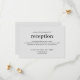 Haga una declaración de elegancia sobria con esta sencilla y clásica tarjeta de gabinete de boda basada en texto sobre gris neutro. Utilice la opción de personalización para cambiar colores y tipos de letra que se adapten a su tema boda. Personaliza todo el texto de esta tarjeta de inserción de recepción y ayuda a dirigir a tu invitado a la siguiente ubicación.