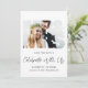 Moderna elegancia o invitación de boda privado y futura recepción nupcial ahorran la fecha de su foto en un marco "Mr & Mrs.", "Celebrate con nosotros" en un guión de moda y sus nombres, fecha de recepción y ubicación en una tipografía simple. Al fondo, personaliza tu invitación y agrega tus nombres casados en un guión parecido a una firma.