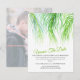 Cambio de planes, no guardar la fecha, tarjeta de aplazamiento de boda con hojas de palma tropical verde acuarela con una foto reciente de la pareja en el reverso. Permita que sus invitados sepan que su boda u otro evento ha sido cancelado o pospuesto debido a circunstancias imprevistas. Otros artículos coincidentes están disponibles.