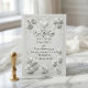 Establece el tono para una celebración primaveral formal con este diseño atemporal que presenta una apariencia floral esculpida. Una estética lujosa para la novia romántica clásica. Este diseño presenta una paleta monocromática sofisticada de blanco suave y marfil cálido. La obra de arte simula un relieve esculpido de alta gama, que representa rosas exuberantes y capullos de tulipán entrelazados con florituras ornamentales y florituras curvas. Un marco rectangular decorativo encierra el texto, que combina la escritura de caligrafía romántica con la tipografía serif tradicional para una apariencia formal. Esta es una imagen impresa plana con un efecto de embossado falso, no material real elevado.