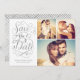 Esta tarjeta de foto para guardar la fecha incluye un collage de 3 fotos, arte de caligrafía con letras a mano rápida y Relieve metalizado metálico de plata falsa. Visite nuestra tienda de diseño para ver más.