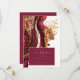 Este elegante conjunto, decorado con impresionantes tonos rojos enológicos, le da un toque refinado a su boda, para que disfrute de los huéspedes con un atisbo de la ostentosa celebración que le espera. La tarjeta boda "Save the Date", que se muestra aquí, se mejora aún más con el espléndido brillo de los acentos purpurinas de oro y proporciona una plantilla para añadir fácilmente sus propios nombres, fecha de boda e información de eventos. Buscar ID1018 para ver otras piezas en este conjunto de bodas coordinado.