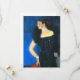 Tarjeta con el retrato de pintura al óleo de Gustav Klimt del Rosa von Rosthorn-Friedmann (1900-01). Una mujer elegante, con un vestido negro brillante y envuelta en un abrigo de piel, se para delante de un hermoso cielo azul por la noche. ¡Un regalo maravilloso para los amantes del arte austriaco!