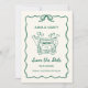 Reserva La Fecha Retro Dibujado a Mano Verde Salvia Único Lazo Coch