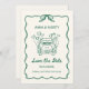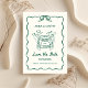 Prepárate para anunciar tu boda de una manera divertida e inolvidable con esta caprichosa tarjeta de "Save the Date" ilustrada a mano. Perfecta para las parejas elegantes de hoy en día, este diseño trendy está elaborado con un estilo único y casual que aporta alegría y personalidad al anuncio de tu boda. La ilustración presenta un clásico coche de bodas con globos en forma de corazón, lo que añade un toque ligero que refleja la emoción de tu próxima celebración. Enmarcado en un delicado borde ondulado con un encantador lazo en la parte superior, el atractivo vintage de este diseño se ve realzado por un color verde fresco y vivo, lo que lo convierte en una opción perfecta para las parejas que aman una mezcla de romance clásico y simplicidad moderna.