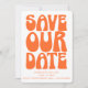 Reserva La Fecha Retro Groovy 70 Naranja brillante Boda de código Q