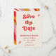 Reserva La Fecha Retro Groovy Boda gráfico rojo de marfil 70