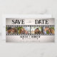 Boda retro guardar la tarjeta de fecha con el collage de fotos de tiras de película. Fondo de la viñette crema / bronceado. Personaliza con tus datos personales de bodas y fotografías de pareja recién casadas.