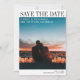 Guardar la fecha minimalista moderno. Una foto principal destaca la parte delantera, mientras que la parte trasera tiene un espacio para 2 fotos o 1 foto y un código QR.