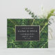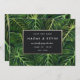Un diseño audaz y fresco con hojas de palma pintadas y un borde dorado falso para un tema de verano y boda tropical.