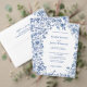 This beautiful design features a delicate blue toile botanical frame paired with a personalized photo on the reverse side, allowing couples to share a meaningful engagement or pre-wedding moment with their loved ones. The classic floral detailing creates a refined and romantic look, perfect for garden weddings, vineyard celebrations, destination ceremonies, and elegant estate venues.