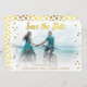 La gran boda fotográfica personalizada salva la invitación a la fecha con hermosas imágenes gráficas de confeti de Relieve metalizado de oro falso en los lados de la invitación. Moderno divertido guardar el texto del guión del broche fijo de fecha en Relieve metalizado falso de oro, y el texto de oro del personalizable debajo y un borde de sobreposición blanco suave semitransparente y romántico. La parte trasera de la invitación tiene un patrón de puntos de polka de Relieve metalizado de oro falso bonito sobre un fondo blanco. Si necesitas ayuda para personalizar tu producto, ponte en contacto conmigo a través de mi tienda y estaré encantado de ayudarte. NOTA: Estas son imágenes gráficas planas impresas - no Relieve metalizado de oro real.