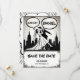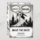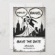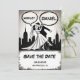 Esta elegante boda en forma de libro de historietas en blanco y negro, que salva la tarjeta de fecha, es perfecta para un boda moderno. El diseño es sencillo y cuenta con una elegante caligrafía negra y un ilustracion de novios con una temática de historietas.