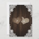 Bodas rústicas salvan las tarjetas de cita con corazones burlap sobre un fondo de madera de granero decorado con encaje floral blanco y luces de cuerdas.