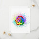 Rosa grande y florecida con pétalos de arcoíris sobre fondo blanco, pintada con salpicaduras de pintura colorida y brillante. 3d