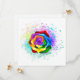 Rosa grande y floreciente con pétalos de arco iris sobre fondo blanco, pintado con salpicaduras de pintura colorida y brillante. 3.ª