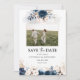Azul marino y Rosa agitado salvan la fecha con foto. El Bridal Shower Invitation es elegante y elegante, y cuenta con hermosas flores azules y Rosas de la Marina pintadas a mano. Encontrar elementos coincidentes en la colección Floral Azul y Rosa Polvoriento de la Marina.