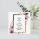 Invitación de boda floral de rosa elegante rosa y marrón, una mezcla perfecta de elegancia atemporal y sofisticación moderna. Con una delicada guirnalda floral de acuarela con peonías, rosas y follaje de eucalipto en tonos azul marino, verde y marfil. La caja impresa plateada gris debajo agrega un toque contemporáneo, mientras que el diseño a doble cara asegura un tema perfecto en todo momento. Elaborada en cartulina premium, esta invitación es totalmente personalizable, lo que la hace única. Ideal para bodas románticas, temas florales y celebraciones sofisticadas. Causa una impresión duradera con esta exquisita invitación que establece hermosamente el tono para su día especial.