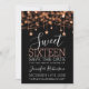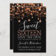 Rosa y dulce negro 16 Birthday Sparkly String Lights "Save the Date" plantilla de invitación con dirección fiesta y detalles RSVP.