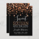 Rosa Gold & Black Sweet 16 Birthday Sparkly String Lights "Save the Date" plantilla de invitación.