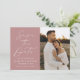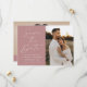 Anuncie a su próximo boda con estilo con esta moderna foto de estilo Rosa con guión moderno ¡guarde la tarjeta de fecha! El diseño presenta la función "Save the Date" que se muestra en una caligrafía blanca a la moda con un fondo polvoriento en rosa. Personalice la parte delantera del minimalista para guardar la fecha con sus nombres, fecha de boda, ubicación y foto de compromiso vertical. La parte posterior de la tarjeta muestra una foto horizontal con el sitio web de su boda que se muestra a continuación. El rosa polvoriento de la moda ahorra la fecha la elección perfecta para bodas modernos.