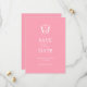 Anuncia tu compromiso con estas invitaciones mínimas de "save the date" para la boda. Presentan una mezcla de tipografía clásica y de escritura en blanco sobre un fondo rosa de moda con un crestón de monograma en la parte superior. Utilice los campos de la plantilla para personalizar con su nombre y fecha de la boda. Incluso personalice los colores para que se ajusten a su tema de boda deseado. La parte trasera cuenta con un código QR personalizado. Simplemente agregue el sitio web de su boda al campo de la plantilla y se actualizará. Elija entre una variedad de tarjetas de alta calidad. Mezcle y combine esta papelería con muchos de mis diseños para crear su tema de boda personalizado. Un diseño clásico y de moda para bodas sostenibles y anuncios de compromiso. Para ver el conjunto de papelería de boda correspondiente, visite www.zazzle.com/dotellabelle