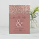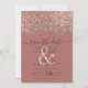 La elegante, glamorosa y moderna tarjeta de aviso de boda guardada es perfecta para la pareja comprometida contemporánea y elegante. Cuenta con un bloque de color con brillo de rosa dorada falsa impresa con confeti brillante y motas sobre un simple fondo de color rosa polvoriento oscuro. La parte posterior muestra el mismo brillo pero con un panel más grueso. ¡Este diseño chic, lujoso y único será un éxito con todos tus invitados!