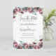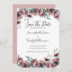 Añadir la información de su boda a esta hermosa floral Guardar la tarjeta de fecha. Los colores son rosas profundas, azules y verdes. Texto formal y tipos de letra utilizados. Hay espacio adicional en la parte posterior para añadir cualquier información adicional, como un sitio web boda.
