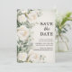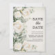Elegante botánico, boda floral de acuarela Save the Date con rosas blancas y follaje. Este Save the Date es una tarjeta sin foto. Contácteme para asistencia con sus personalizaciones o para solicitar productos adicionales de Zazzle que coincidan o coordinen.