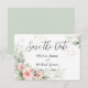 Elegantes rosas de acuarela con rubor rosa sobre un fondo de acuarela rosa pastel con verdes de eucalipto mezclados. La parte trasera de esta tarjeta es verde pastel para resaltar la exuberante vegetación y el eucalipto mezclado. Simplemente hermoso. Se utilizó letra script elegante para resaltar la elegancia del diseño de esta tarjeta de “Guardar la fecha”. 100% de satisfacción del cliente todos los días en “Zazzle”.