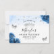 ¿Celebrando una elegante fiesta temática de princesa con un esquema de colores azul real y plata, y buscando ideas de papelería a juego? Cree su propia plantilla de invitaciones de "save the date" personalizadas con su nombre y otros detalles. El arte de acuarela floral de Raphaela Wilson presenta rosas azules reales acentuadas con plata metálica falsa, una corona/tiara y mariposas de confeti brillantes. Si está organizando un evento de "érase una vez" no relacionado con una fiesta de cumpleaños de dulces 16 años como se muestra, estas tarjetas de "save the date" de cuento de hadas y florales pueden reescribirse para adaptarse a bodas de rosas, una quinceañera azul real (para 15 años), una ducha de novia, una ducha de bebé de Cenicienta para una niña, así como otras ocasiones memorables. Si prefiere crear imanes personalizados de "save the date" o tarjetas postales económicas, simplemente transfiera el hermoso diseño de mariposas a otra plantilla de papelería. ¿Prefiere un estilo tipográfico alternativo? No dude en cambiar la escritura de caligrafía negra y las fuentes modernas a algo más. Incluso puede incluir una foto lujosa de Mis Quince Años (XV) o una foto de compromiso en el reverso. ¡Disfrute! Categoría: papelería de boda elegante para "save the date"; invitaciones de boda de acuarela azul con rosas/flores; y accesorios de envío de "save